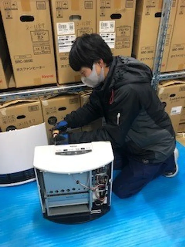 森田産業では、ガスファンヒーターレンタルを「レンタル→返却→リユース」のサイクルで繰り返すことで多くのユーザーに利用していただいています。全ての製品は社内のスタッフでメンテナンスをし、自社では修理が難しい故障でもメーカー修理を行い廃棄せず使用しています。