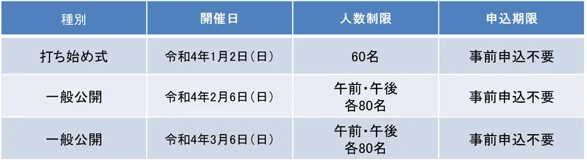 関鍛冶伝承館古式日本刀鍛錬 令和4年1~3月一般公開日程