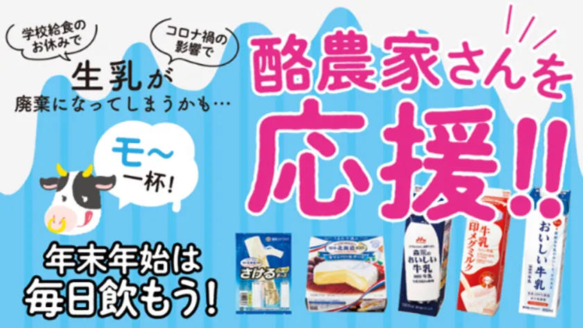 株式会社ベルク(代表取締役社長:原島 一誠、以下 ベルク)は、新型コロナウイルスの影響による需要回復の遅れ、または年末年始で学校給食用の消費減少により、大量廃棄が心配される生乳の消費拡大を目的に、年末年始(2021年12月26日~2022年1月7日)の期間中、ベルク全店において国産牛乳・乳製品20品目以上の商品を応援価格でのご提供またはベルクカードポイント20ポイント付与させていただきます。
