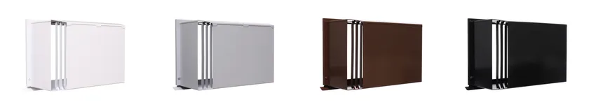 専用外気フードはホワイト、シルバー、チョコレートブラウン、ブラックの4色展開(深型はホワイトのみ)です。外壁の色やエクステリアに合わせてお選びいただけます。