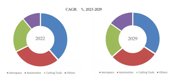 製品の用途別では、航空宇宙が最大の用途で、34%のシェアを占めている、