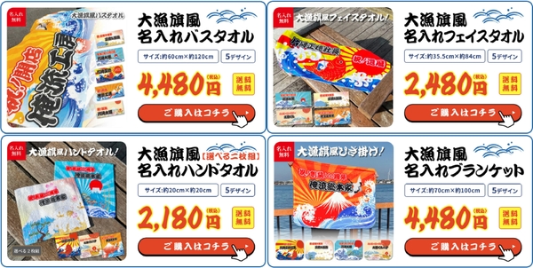 【7月15日は海の日・漁師の日】1週間限定セール、名入れ大漁旗風タオルが10%OFF