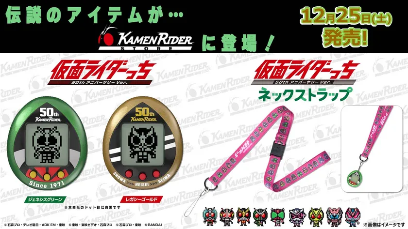 “仮面ライダー50周年”דたまごっち25周年”のコラボ商品 「仮面ライダーっち」が仮面ライダーストアに数量限定で登場!