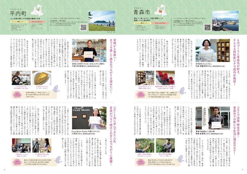 青森・東青地域へU・Iターンや地域おこし協力隊など様々な形で移住された方々が移住のきっかけや苦労したこと、これからの目標、東青での暮らしのアドバイス、移住される方へのメッセージを掲載しています。