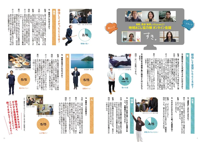 地域おこし協力隊員5名の方々がオンライン会議を実施。青森「東青」ってどんなところか、実際の体験を基に「雪」「方言」「物価」「自然」「食」「人」をテーマにディスカッションした「生の声」を掲載しています。