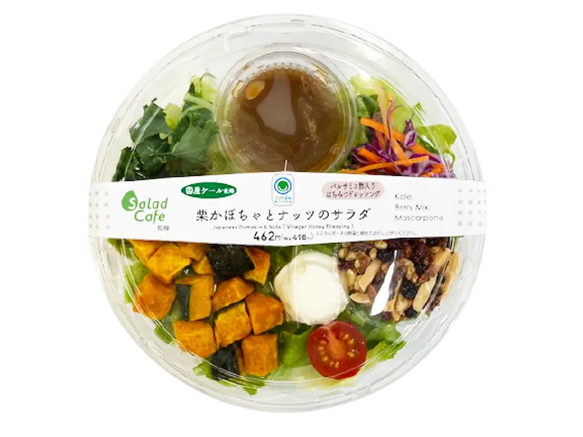 ケンコーマヨネーズ株式会社(所在地:東京都杉並区、代表取締役社長:炭井 孝志)の100%子会社であるサラダカフェ株式会社(所在地:大阪府吹田市、代表取締役社長:新村 譲、以下「サラダカフェ」)は、このたび株式会社ファミリーマート(本社:東京都港区、代表取締役社長:細見 研介、以下「ファミリーマート」)より発売される『栗かぼちゃとナッツのサラダ』を監修いたしました。本日1月4日(火)から、全国(北海道、沖縄県を除く)のファミリーマート約16,000店舗で販売されます。