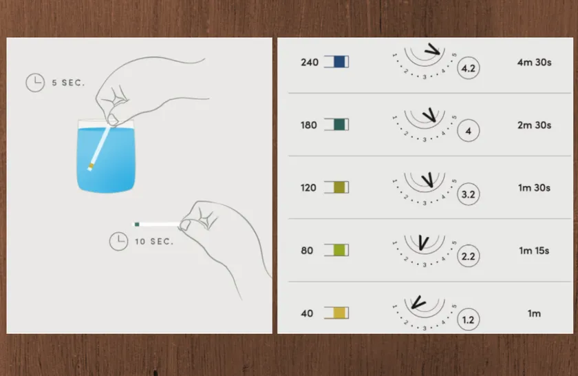 【STEP1】付属ペーパーでpHをチェック、推奨の設定、時間を確認します。