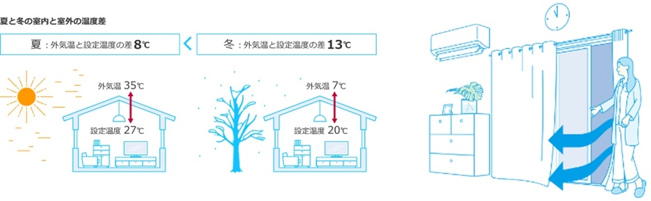 こうした冬場の換気特有の課題は、様々な工夫で和らげることが可能です。当社は、「上手な換気の方法」や「上手なエアコン暖房の方法」を通じて、室内の温度や湿度の低下を抑える工夫や換気時にエアコンに掛かる負荷を抑えて消費電力の無駄を抑える工夫、室内の湿度を保つことで設定温度の上げ過ぎを抑える工夫などを紹介しています。