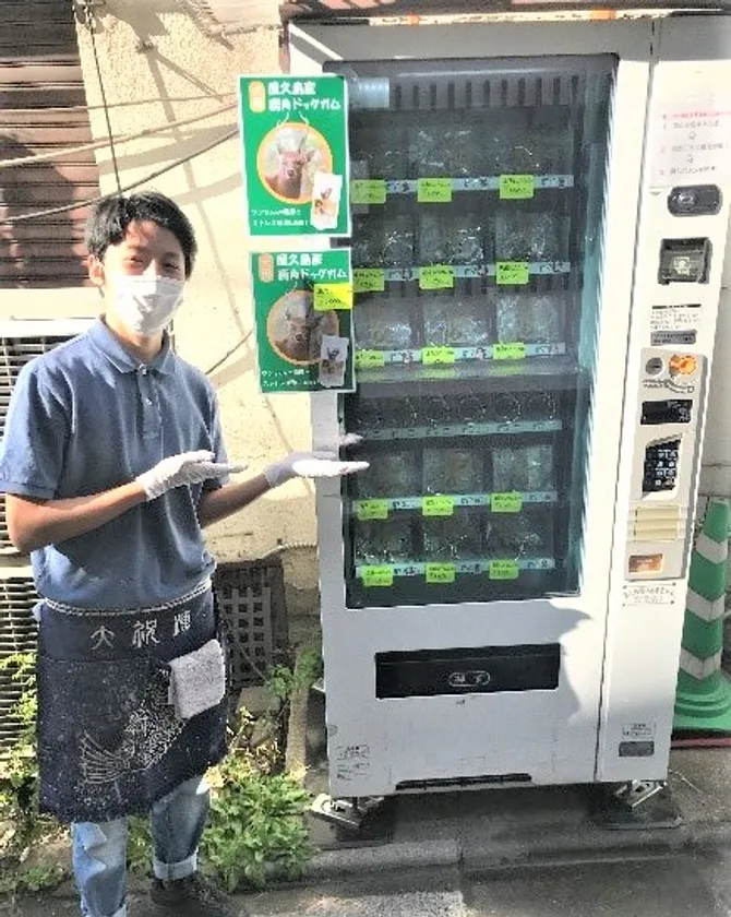 谷中銀座商店街に新名所誕生 小型犬用の天然国産 「屋久島産・鹿角ドッグガム」を自販機で販売開始 ~ワンちゃんの安心安全、自然保護、商店街活性に~