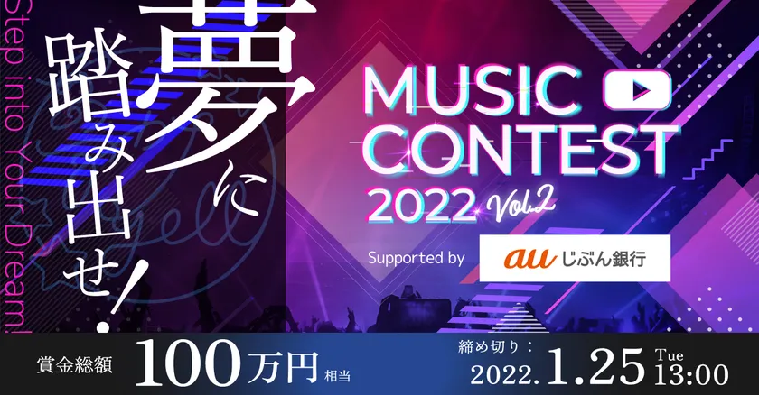 夢を叶えたいアーティスト必見!TV・CM出演のチャンス! 『夢カナYell Music Contest 2022 vol.2』 Supported by auじぶん銀行 開催決定! オリジナルMV等の作品の応募受付開始