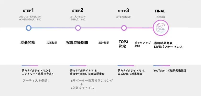夢カナYell公式サイト内コンテストページより応募できます。