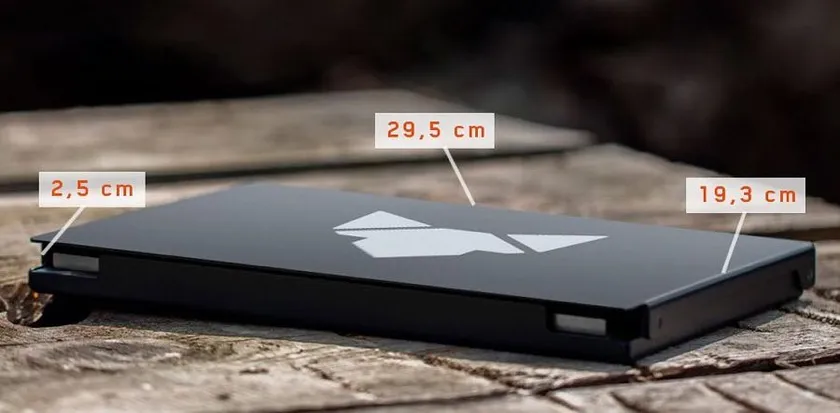 従来のBBQコンロに比べ、非常にコンパクトで収納時の厚みはおよそ3cm。収納場所に困ることはありません。