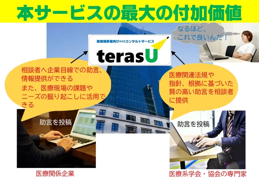 2) 「医療従事者が医療関係企業へ“相談”でき、企業目線で助言や情報提供ができる場を提供します。」(医療関係企業の営業活動に役立つ機会を提供します。)