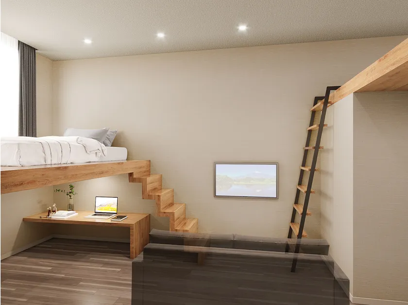 2段階の空間がある事により、狭い空間の中にもデザイン性があり入居者のワクワクを意識した商品となります。
