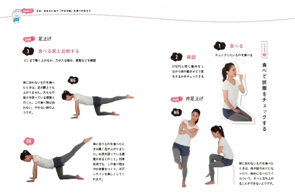 特に、すぐに効果がわかって面白いのが、自分に合う味を知るための「テイストチューニング」。甘味、塩味、酸味、苦味の4つの味の食べ物を用意し、それぞれの味を食べてから、簡単な動きをします。すると、同じ動きでも簡単にできたりできなかったり、手や足の上がる位置が大きく変わったりと、如実に差が出るのです。