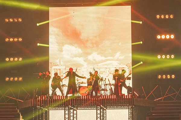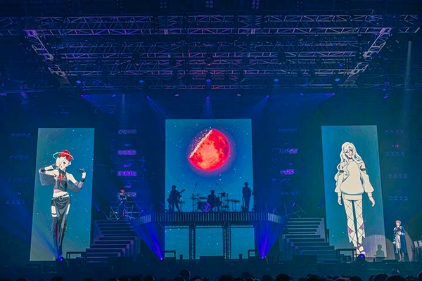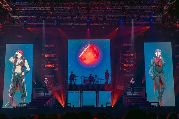 2022年6月12日、TVアニメ「ヴィジュアルプリズン」のキャスト総勢10人が一堂に会するライブイベント「VISUAL PRISON 1st GIG -RED MOON-」が、幕張メッセ・幕張イベントホールで開催された。アニメのシリーズ構成を担当した菅原雪絵による書き下ろしドラマを軸に、上松範康率いるElements Gardenにより手掛けられた楽曲を生バンドで披露。ヴィジュアル系音楽のパフォーマンスを追求し、約7,000人の観客と全世界の配信視聴者を魅了したステージの模様をレポートする。