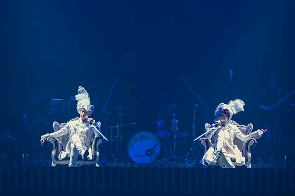 ディミトリらしい尊大な奔放さで歌われた増田の「Divine Love」。手振りと共に「この胸へと堕ちろ」と、扇情的なメッセージを放つ。ピンヒール姿と他の追随を許さないハイトーンボイスを操る蒼井は、ハイドの「Holy Love」で、真実の愛を捧げる者に天にも昇る恍惚を与えた。