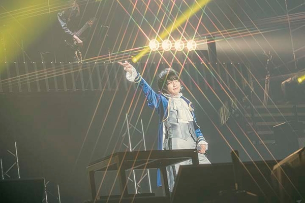 島﨑信長は、アカペラからどんどん楽器が増えていくと同時に、スクリーンに映る歌詞のフォントも強度を増していくという演出を伴い、ミストが懐く焦がれるほどの敬愛を「My Principal」で切々と歌い上げた。江口拓也が、その低音で吠え、噛み付くように歌う「K or K」では、唯一の欲しいものが手に入らないサガの苦悶が業火のごとく燃え上がる。