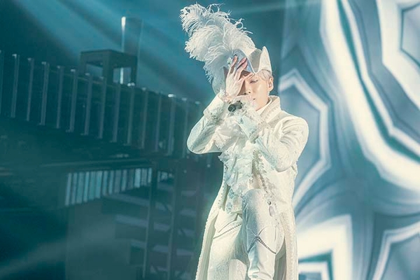 しかしそこへ「みんなで遊びましょう」と、招かざる客がやって来た。イヴに憑依している、ヴァンパイア・カルミラだ。二役を演じる七海ひろきが、薔薇をたずさえ、高らかに歌い上げる「銀河ティアラ」。星の瞬きのようなウィンクで、会場中に魔法を掛けた。カルミラには負けられないのが、美しさを追求するエリザベス。ビジュアルも仕上げてきた永塚拓馬は「シャルムの輪廻」で、夢と現のはざまで繰り広げられる舞踏会へといざなう。