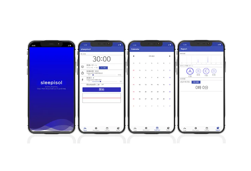 本製品はSleepisol専用のアプリと連動して、様々な機能を活用することができます。デバイスの動作の強弱や目的別のパターン設定や使用履歴、累積情報などを確認できます。専用アプリでSleepisolを更に快適に使用できます。