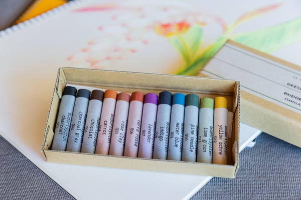 月桃の成分を始めとした、自然由来のクレヨンで好きなものをスケッチします。合成顔料を使用せず自然の素材で作られたクレヨンは、優しくあたたかみのある色合いです。普段は見落としてしまうような植物の姿や、建物が多い都会では見られない、多彩な自然の色を感じ取ります。手先や目を動かし、日常生活で鈍っていた感性を刺激する体験です。集中力を高めて作品を完成させた後は、達成感に満ちた、すっきりとした心持ちになります。