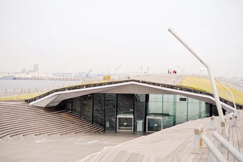 横浜港に面しており、水面に浮かぶ“くじらのせなか”と呼ばれており、様々なイベントやファッションショーなども行われています。