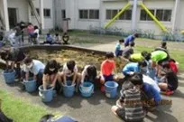 新米の時期に市内の水田で収穫されたお米を、学校の給食で食べていたことを栄養士さんから教わりました。「総合的な学習の時間」で、日本人の主食であるお米作りへの興味を深める中で、バケツ稲の存在を知り、5年生105人で取り組みました。実際にバケツで稲を育てるにあたって水位を保つことの大切さや、時期によっては土を乾かす必要があることなど、自然や科学についての観察力や知識を自ずと身に着けることができたようです。