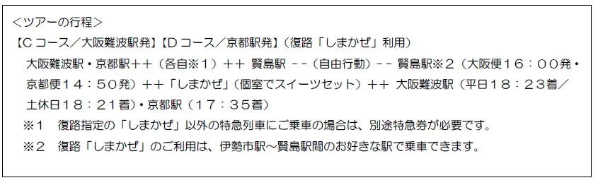 【Aコース】(大阪上本町駅発、往路「しまかぜ」個室利用)