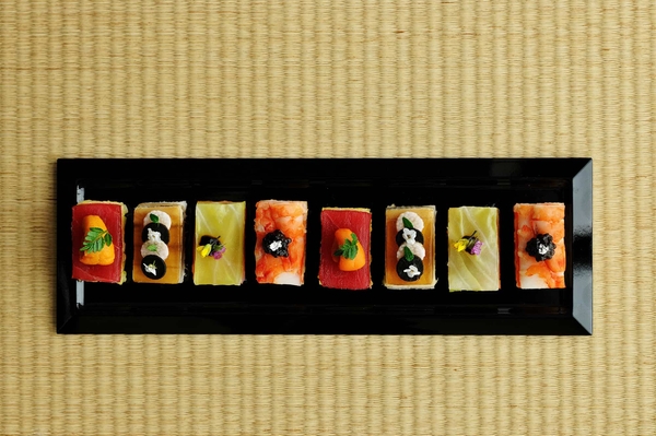 各施設が独創的なテーマで圧倒的非日常を提供する「星のや」。東京・大手町の日本旅館「星のや東京」は、茶事になぞらえたアフタヌーンティーを 2022年4月15日より提供を開始します。星のや東京総料理長 浜田統之(はまだのりゆき)(以下、総料理長・浜田)が、江戸時代、武士の嗜みの一つであった茶の湯と、免疫力を高めるといわれる発酵食品とフレンチの融合を楽しめるコース料理「Nippon キュイジーヌ 〜発酵〜」の要素をかけあわせました。日本酒と点心、濃茶と主菓子、薄茶と干菓子という茶事の流れをアフタヌーンティーで表現します。日本酒と点心はスパークリング日本酒と押し寿司、濃茶と主菓子はオリジナルブレンドコーヒーと江戸味噌マカロンなどのデザート、薄茶と干菓子は薪火晩茶(まきびばんちゃ)と黒文字茶ショコラサンドなどのミニャルディーズを用意します。