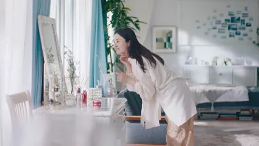 白い衣装に身を包み「理想の自分にこだわるのは、やめちゃいました。」と笑顔を浮かべ、本を読みながらベッドでのびをする吉高さん。クリームを手に取り、幸せそうな表情を浮かべます。「誰よりも楽しみたいし、誰かの笑顔も見たい。それが今の原動力かも。ちゃんと心って生きてますね。」と内なる美しさについて語り、最後のカットでは、赤のワンピースに着替え「築いてきた自分を信じていこう」と視聴者の背中を押すような前向きなメッセージで締め括ります。吉高さんの透明感あふれる笑顔と、自然体な姿にご注目ください。