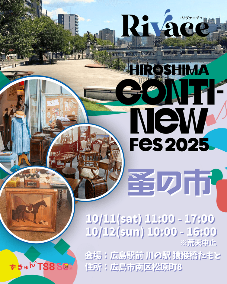 HIROSHIMA CONTI-NeW FeS実行委員会(実行委員長:TSSテレビ新広島)では、広島駅前の川沿い「川の駅」で初めてとなる【蚤の市】を開催いたします。