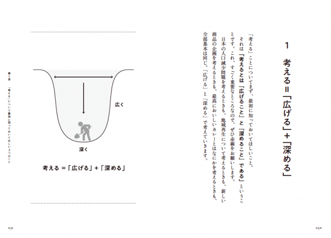 アイデアを生み出せるのは特別な能力、スキルを持っている人だけではなく、アイデアは方法さえわかれば誰でも生み出せます。考えることは、「広げる」+「深める」ということ。