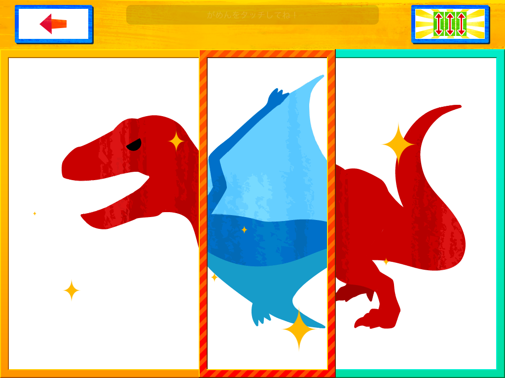 2.アップデートにより、無料のお試しセット5種類のうち4種類が恐竜になりました。恐竜の名前、イラスト、アニメーションに触れながら、絵合わせを楽しむことができます。