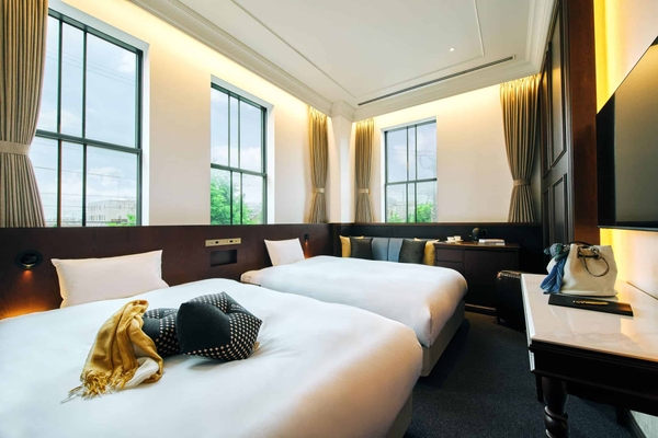 旅の目的や同行者に合わせて選択できるように、複数タイプの客室を用意します。例えば、レトロなデザインとゆとりのある空間が特徴で、特別な旅行にも相応しい「デラックスルーム」や「スーペリアルーム」、明るい空間に快適な団らんスペースを設えた「ツインルーム」などがあります。