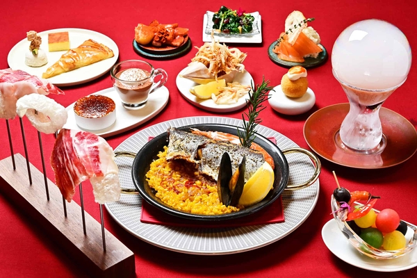 南館の3階に位置する「OMOカフェ&ダイニング」は、旧小樽商工会議所の大会議室だった場所を改装したレストランです。ここでは、スペイン料理をアレンジしたメニューを提供します。歴史的建造物に宿泊するスペインの旅行文化と、海の幸を活かした料理が多いスペイン料理から着想を得ました。夕食のおすすめは、港町の小樽を象徴するニシンを使用したパエリアです。消費が低迷するニシンの魅力を再発見すべく、地元の方に協力していただき開発した一品です。朝食では、スペイン料理の定番であるチュロスやトルティージャ(スペイン風オムレツ)を目の前で仕上げて、提供します。カフェとバーの時間は、フリーラウンジとしても利用できます。