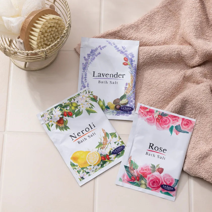 「ラサーナ アロマ バスソルト」は、「ネロリ」「ラベンダー」「ローズ」の全3種類に広島県産「エコレモン」果汁を配合し、潤いのあるすべすべ肌へと導いてくれるパウダータイプのバスソルトです。アロマに慣れていない方でも簡単に取り入れることができるので、この機会にアロマの香りに包まれる至福のバスタイムでリラックスしてみてはいかがですか!?
