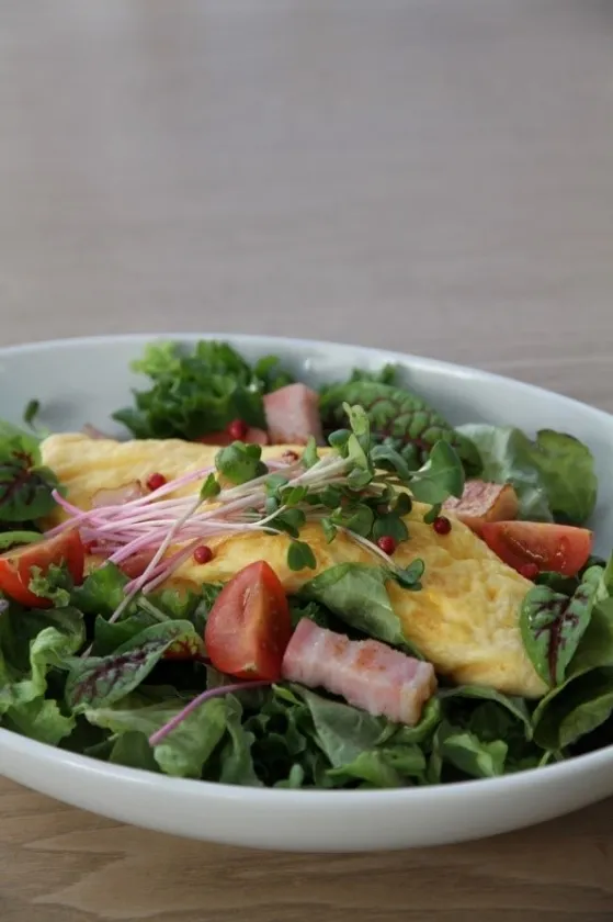 チーズオムレツとベーコンのサラダ