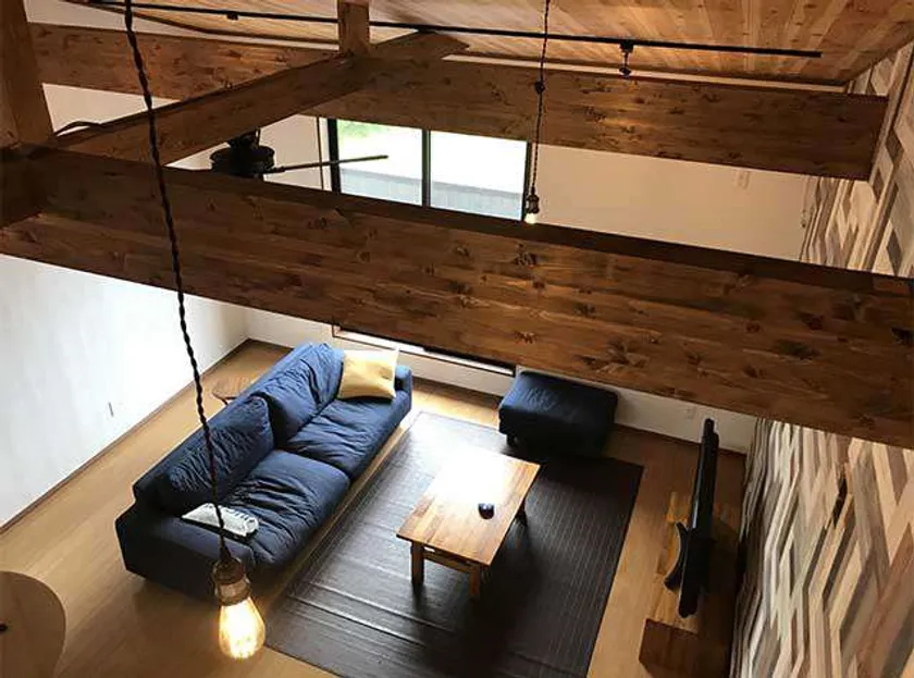 この物件は、外シャワー、玄関直結の洗面所等、サーファーが使いやすい設備を備え、さらに勾配天井で開放感のあるリビングやウッドデッキが標準装備されています。