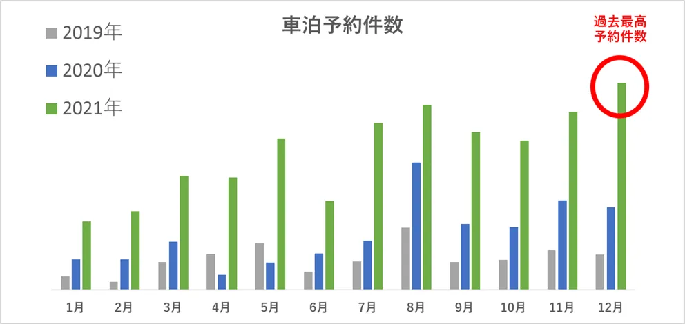 コロナ2年目でさらにニーズが高まる屋外レジャー 新しい旅のカタチ「車泊(くるまはく)」は 2021年も人気継続で予約件数が2倍に