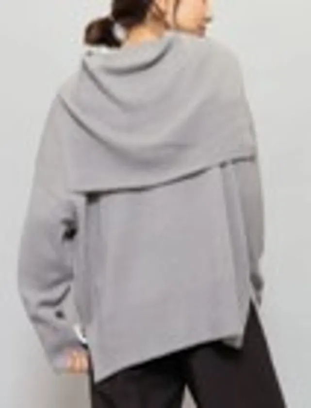 デザイン性のあるバックスタイルが個性的なニットプルオーバー。可愛さも漂う大きめのセーラーカラーは、まるで首にニットを巻いているかのようにも見え、脚長効果やウエストのすっきり見せも叶うサイドスリット入りのディテールでお洒落度アップ。秋冬コーデにしっくり馴染むベーシックな4色展開で、着回し自在な注目のトップスです。