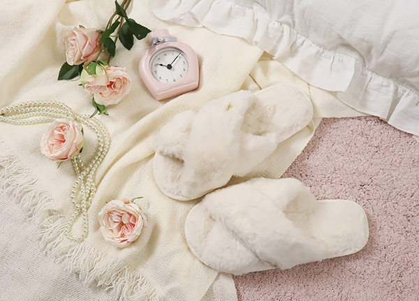 また、この期間中、税込11,000円以上お買い上げのお客さまに、ふわふわで肌触りのいいオリジナルのファーサンダルをプレゼント。
