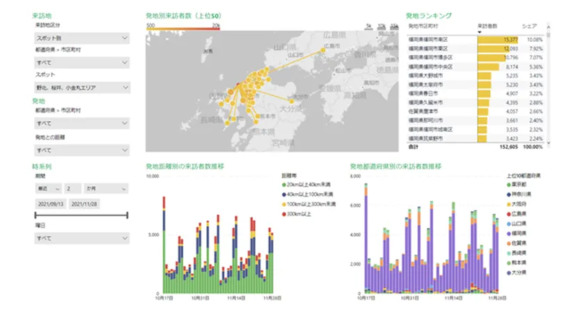 市区町村および観光スポット来訪者の行動特徴を準リアルタイム提供するWebサービス。