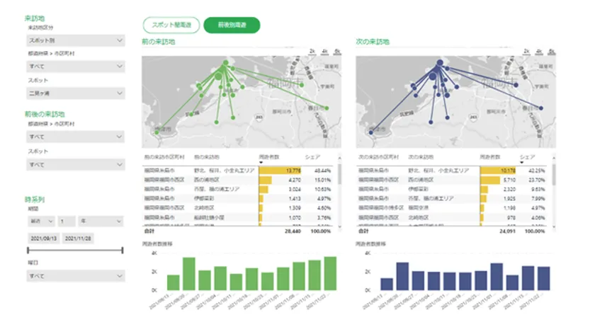 「おでかけウォッチャー」画面イメージ(プレミアムサービス:周遊分析)