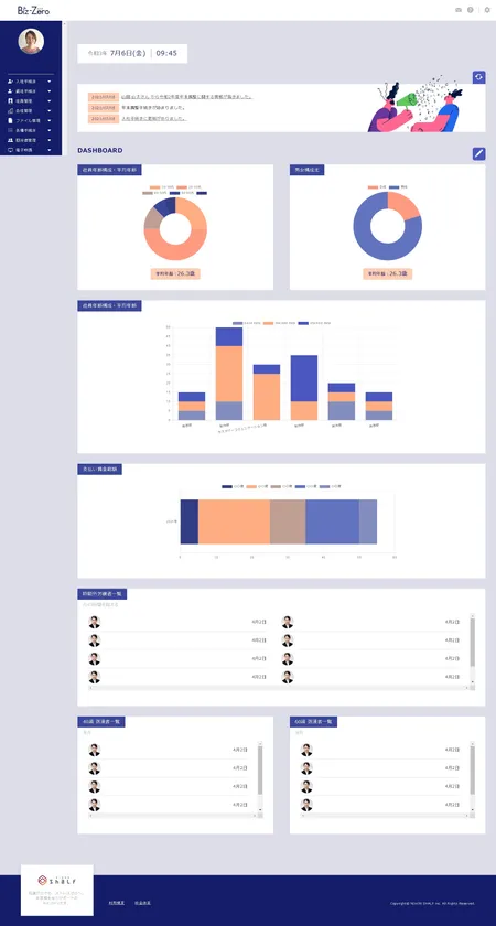 「Biz-Zero(ビズ・ゼロ)」は、入退社の電子申請・社内申請のデジタル化・日報などの人事労務に関する業務が行えるクラウドツール。中小企業はもちろん、飲食店や人材派遣企業など、入退社の申請が多い企業にもおすすめのツールである。システムが不慣れな企業、労務管理をしっかりと構築したい企業、どちらの要望にもサポートできる体制を整えており、知識がゼロでも使いやすいソフトとなっている。14日間の無料体験期間も設けている。