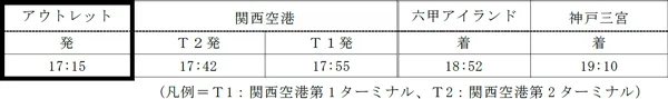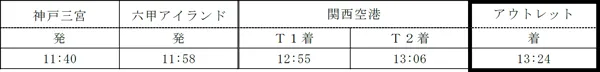 (2)アウトレット発→神戸三宮着便(関西空港交通の運行)