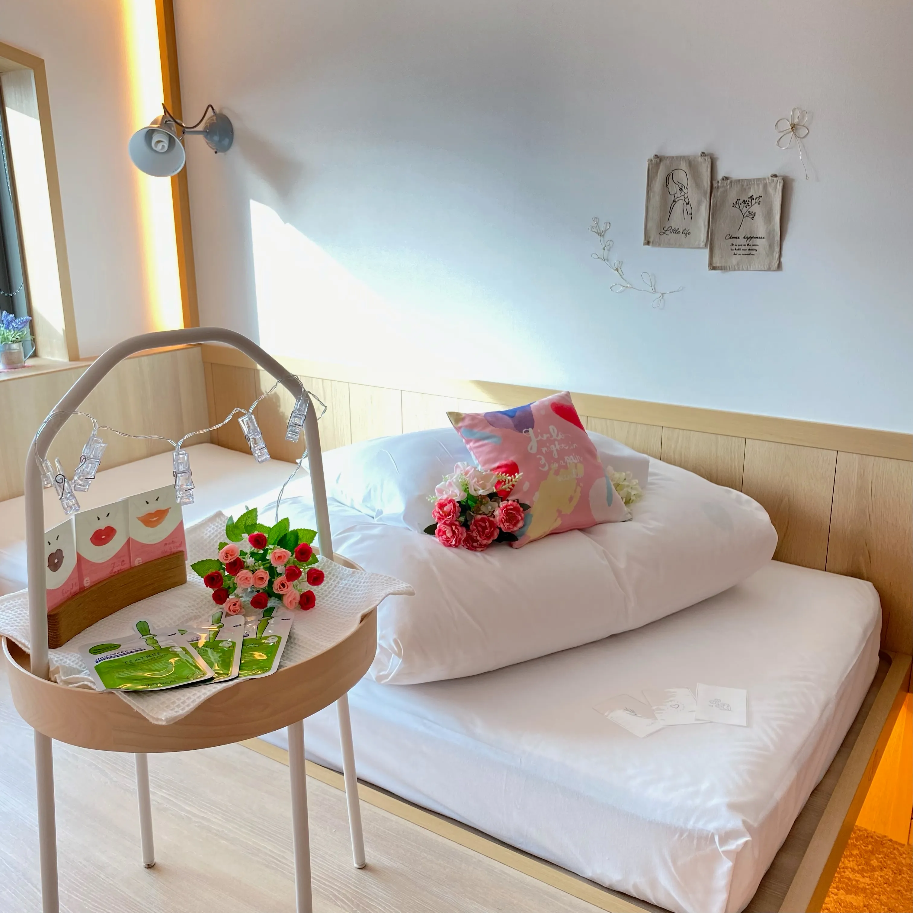 CAFETELの1日1室の期間限定コンセプトルーム。今話題の渡韓ごっこをするならCAFETELで決まりです!キヨウンとは、韓国語で「可愛い」という意味で、韓国の女の子のお部屋をイメージした、シンプルで可愛いお部屋です。室内には、ワイヤーアートや、ドライフラワーなど写真映えするアイテムをご用意。更に、滞在中にご使用いただける韓国フェイスパックをプレゼント!CAFETELの近くには韓国料理のお店や、カフェがたくさんあるのでテイクアウトをしてお部屋で食べたら、もうここは韓国。夜はフェイスパックでスキンケアもばっちり!ぜひCAFETELで渡韓ごっこしませんか?