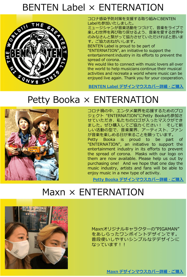 ENTERNATIONはいち早く日常を取り戻し、様々なイベント、ライブ、コンサート再開の手助けとなるよう今後も積極的に活動していきます。