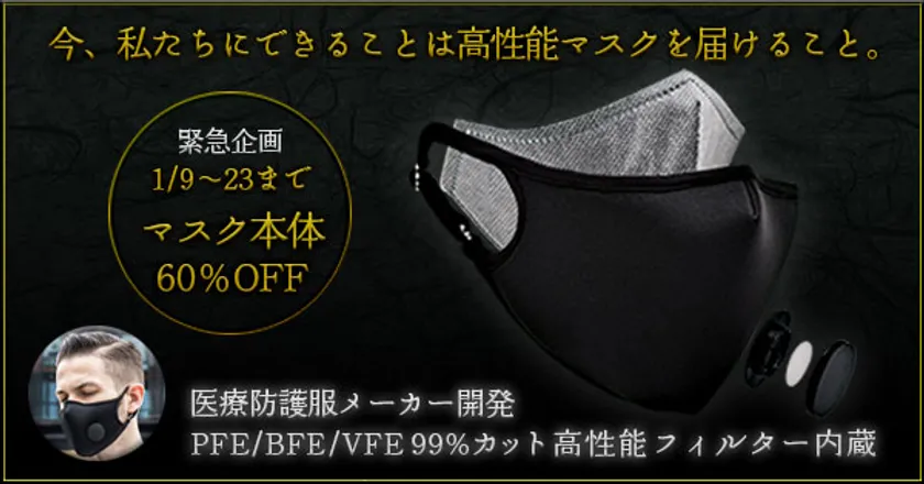 ウイルス・抗菌・消臭対策と美しさを追求した高性能なHSBマスク 60%OFFキャンペーンを1/9~1/23の2週間限定で緊急開催