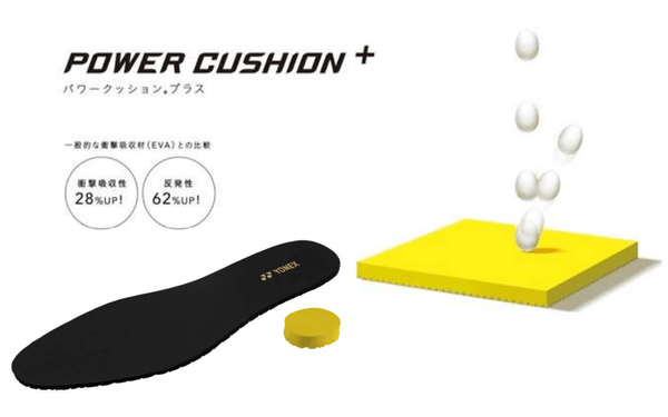 衝撃吸収性と反発性を併せ持つ、「軽く、疲れにくい」を特徴としたヨネックス独自の衝撃吸収反発素材「パワークッション」。