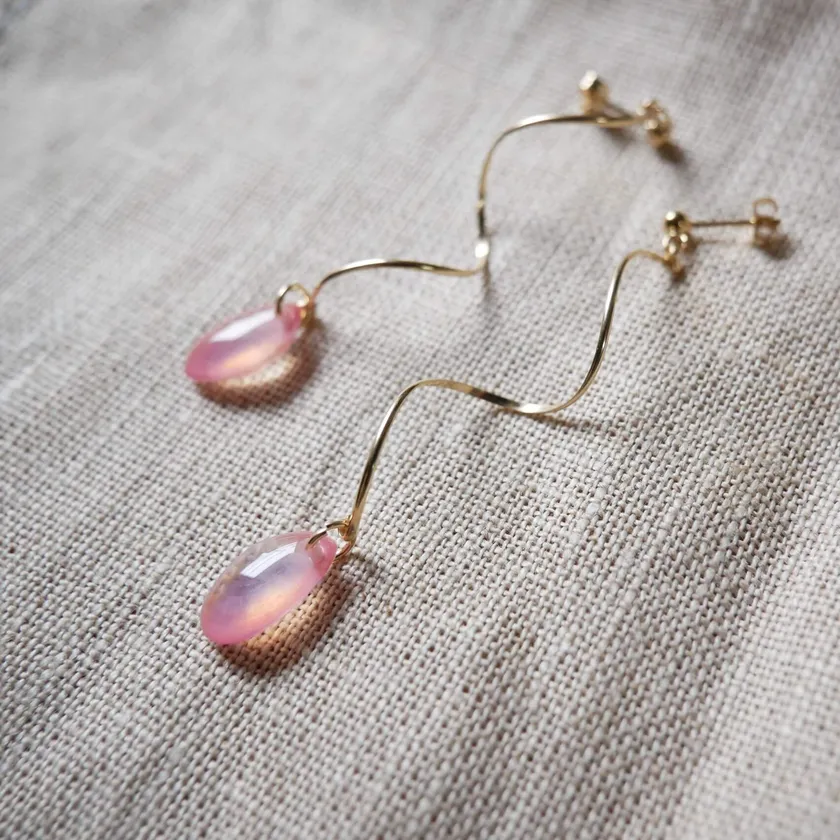 桜貝をそのまま1枚使用した“さくらひとえ”シリーズ。桜貝本来の優しい天然色と繊細な透明感を活かしつつ特殊樹脂でふっくらとコーティングしました。薄い花びらのような表面と色彩の濃淡を持つ裏面と桜貝の美しさをまるごと堪能できます。「桜貝の一重(一枚)が一恵をもたらす」という願いを込めて“さくらひとえ”と名付けました。耳や胸元でゆれるひとひらの桜貝はあなたの表情をイキイキと惹き立てます。豊富なアイテムがありますので、カジュアル使いからパーティシーンまで目的に合わせてお使いいただけます。